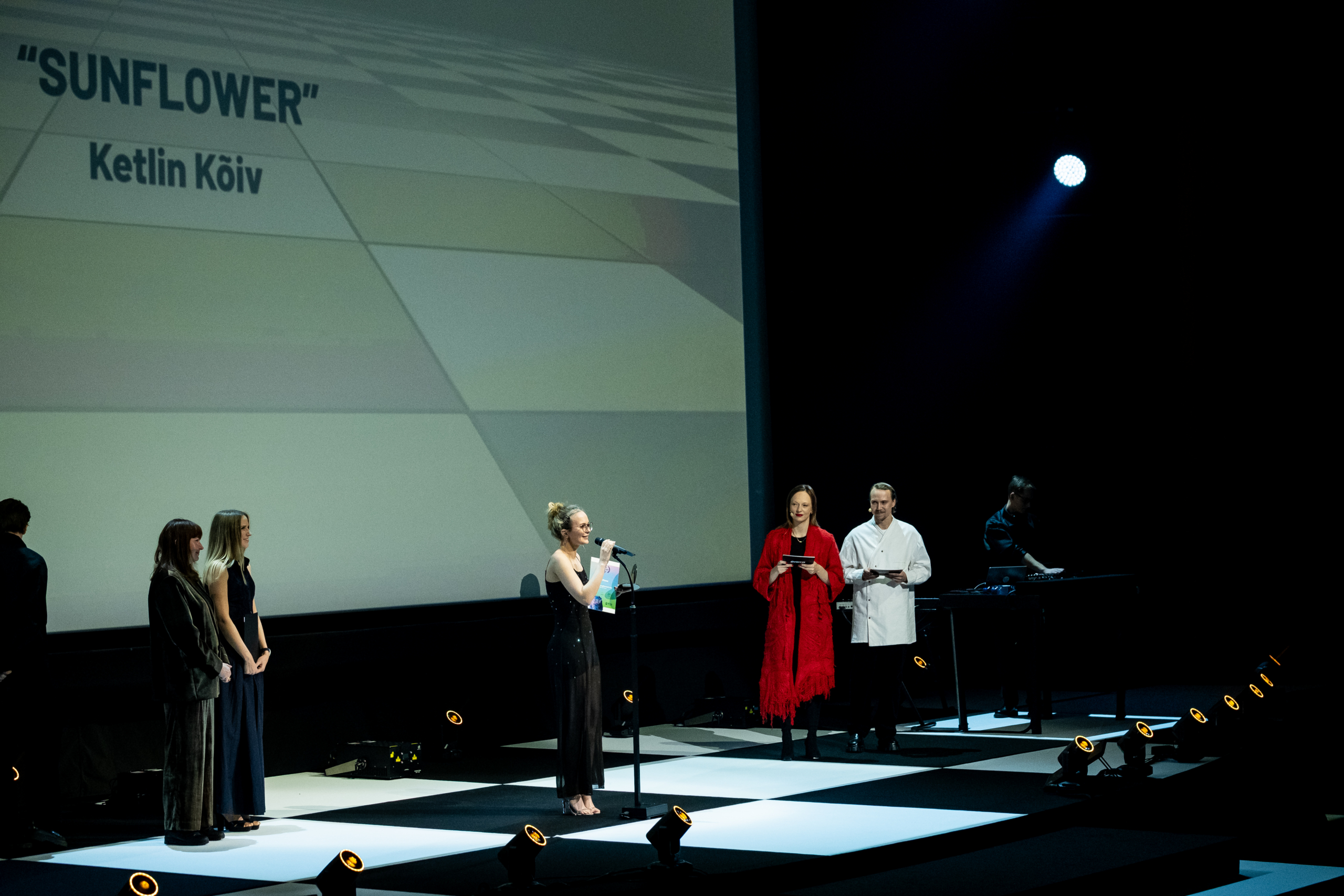 Ketlin Kõiv Just Filmi võistluse laval auhinda vastu võtmas.