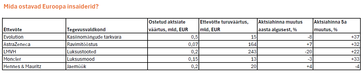Mida ostavad Euroopa insaiderid? Tabel.