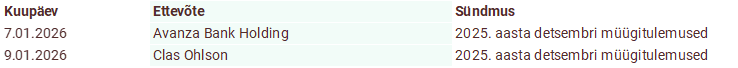 Järgmise nädala investorkalender