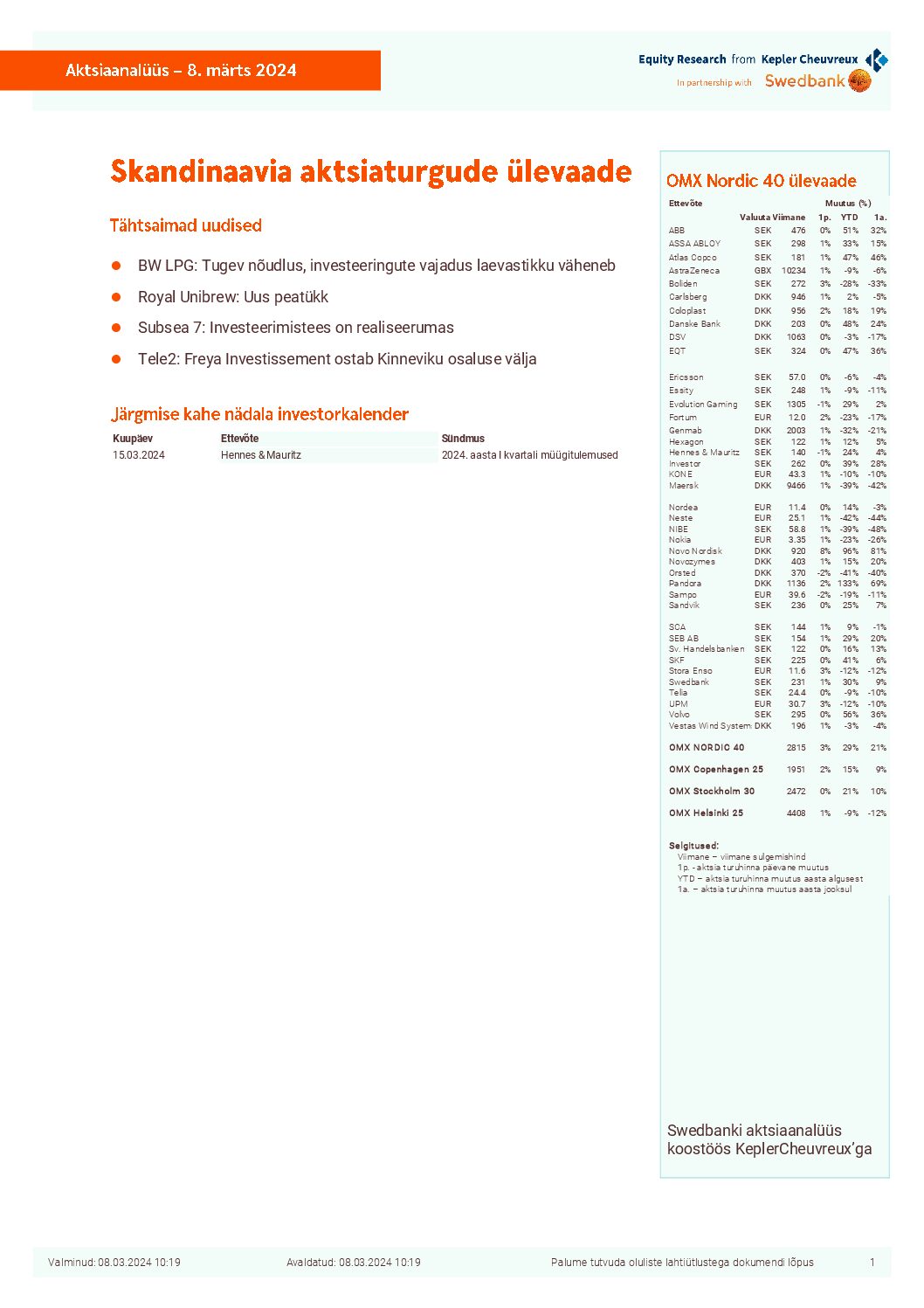 Skandinaavia aktsiaturgude ülevaade_08.03.2024