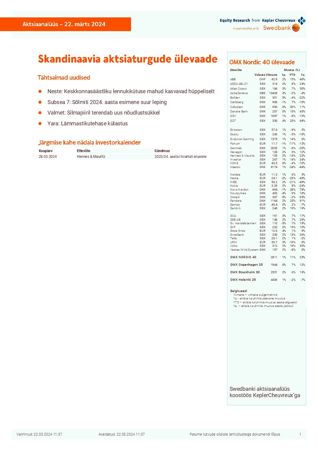 Skandinaavia aktsiaturgude ülevaade_22.03.2024