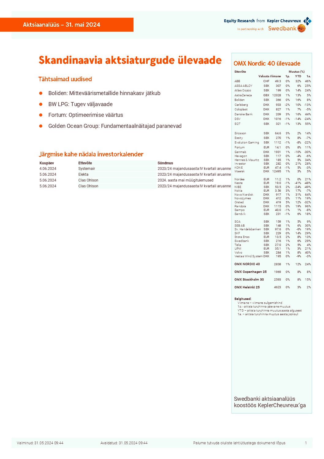 Skandinaavia aktsiaturgude ülevaade_31.05.2024