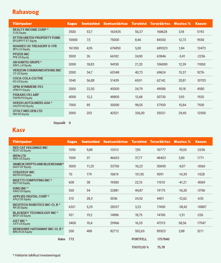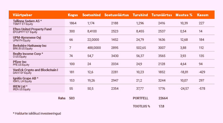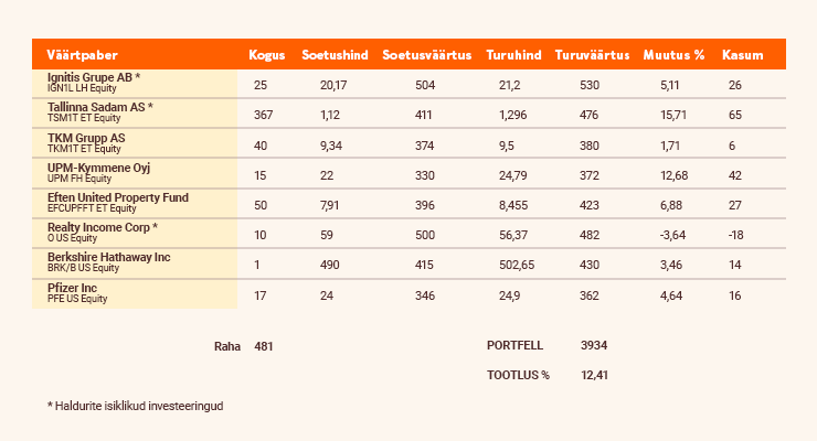Igal kuul jagame Sinuga ülevaadet, kuidas läheb podcast’i „Investeerimisjutud“ virtuaalportfellidel.