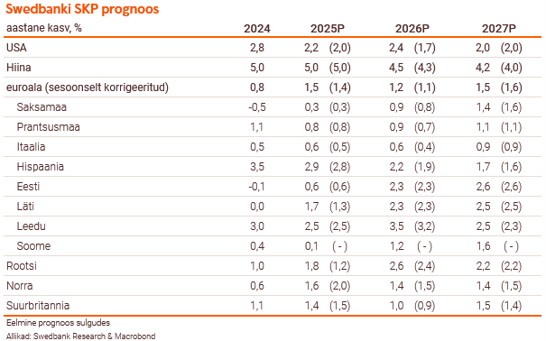 USA majanduskasv eelmisel aastal küll aeglustus, kuid oli oodatust tugevam. Peamiselt toetasid kasvu investeeringud tehisarusse, tugev eratarbimine ja tollimaksude oodatust nõrgem mõju. Sel aastal peaks USA majanduskasv veidi kiirenema. Aasta teises pooles peaks inflatsioon hakkama aeglustuma ning koos maksulangetuste ja madalamate intressimääradega jääb majapidamistele rohkem raha tarbimiseks, toetades samuti ettevõtete investeeringuid.