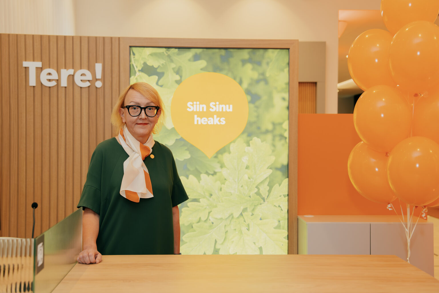 Fotol seisab Swedbanki Arteri esinduse vastuvõtulaua taga Ede Raagmets