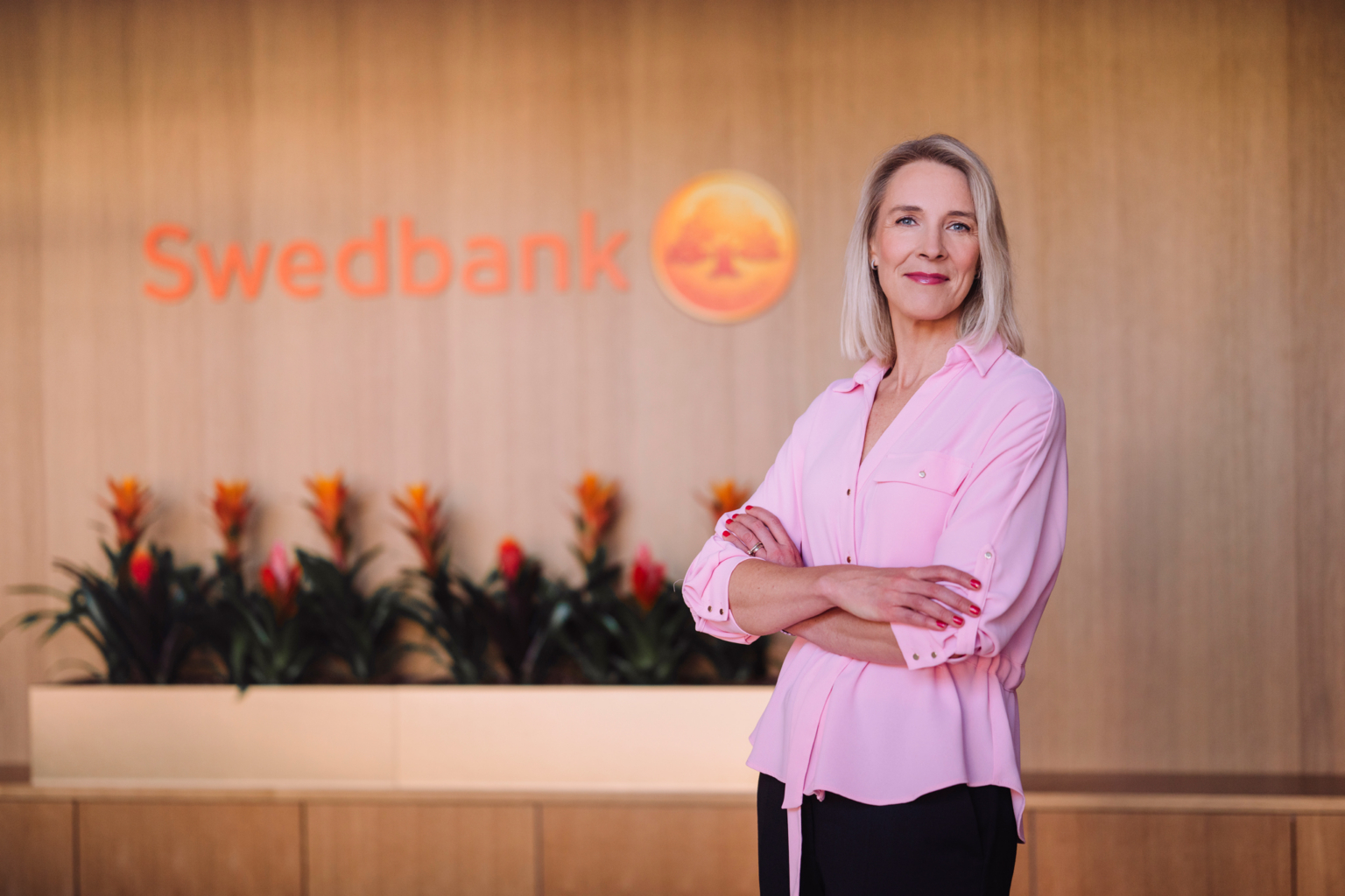 Fotol seisab Swedbanki kõneisik Katrin Meos