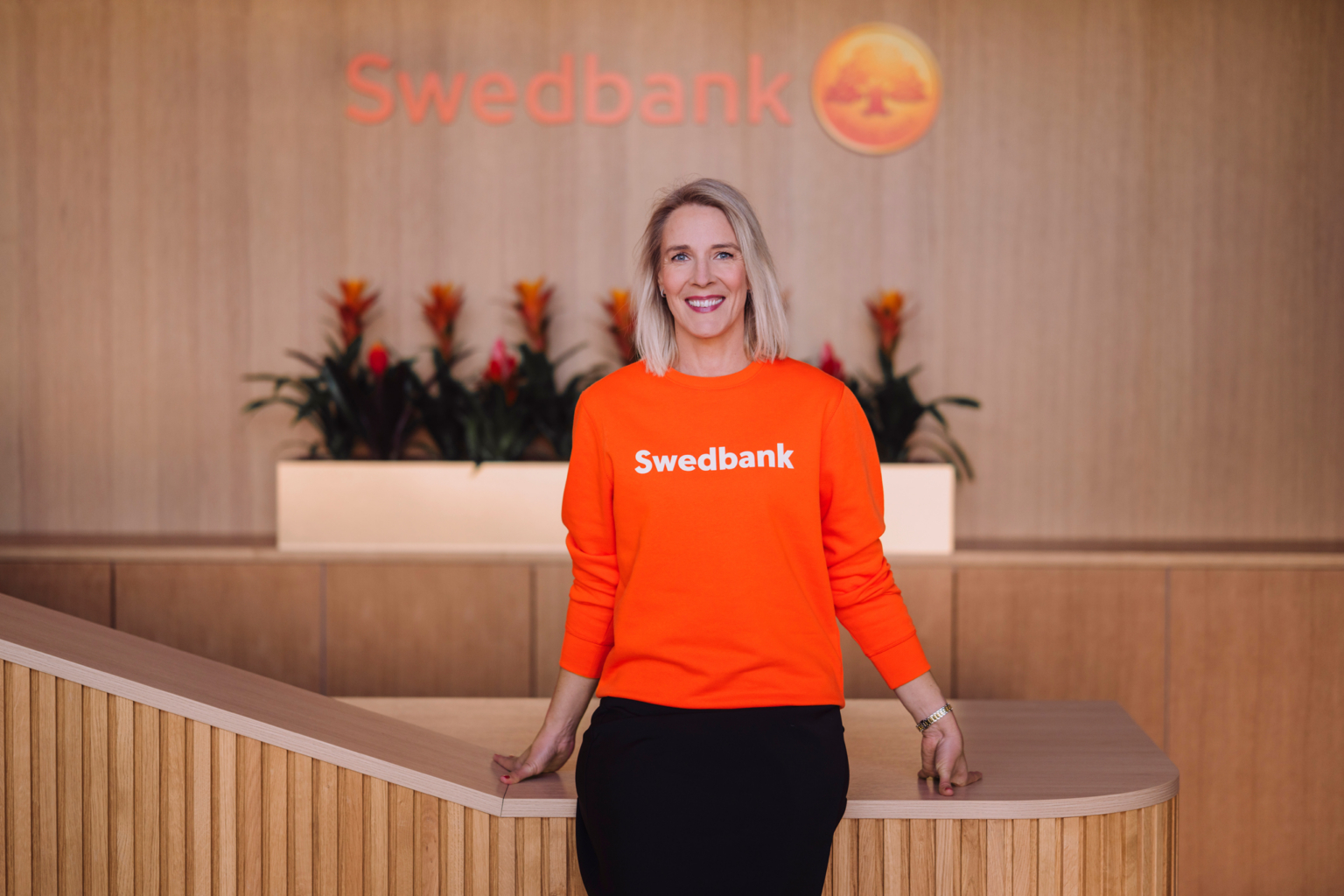 Fotol seisab Swedbanki kõneisik Katrin Meos