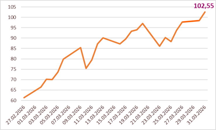 5.aprillil toimub OPEC+ naftariikide kohtumine, kus üritatakse olukorrale lahendust leida, kuid see ei ole kindlasti lihtne ülesanne. Donald Trump on ähvardanud olla Iraanis veel paar nädalat ning purustada Iraani olulised energiataristu rajatised. Täiendavad sõjalised konfliktid ei aita aga kahjuks kuidagi olukorda energiaturul stabiliseeruda. Üllataval kombel kallines maagaasi hind märtsis vaid pisut enam kui 3% ning kasvava nõudluse tõttu püsib hinnasurve ka sa seal.