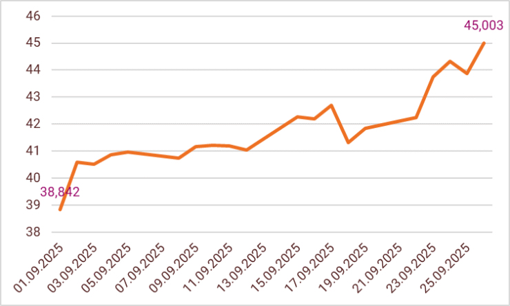 JP Morgani poolt kuu aega tagasi tehtud prognoos, et Föderaalreservi sõltumatuse vähenedes võib kulla untsi hind liikuda 5000 dollari suunas ning USA valitsusasutuste töö sulgumine oktoobri esimesel päeval on aidanud kulla hinnal teha uusi rekordeid. Veelgi enam on aga rallinud hõbeda hind, mis septembris kallines dollarites mõõdetuna 19%. Viimase viie aastaga on nii kulla kui hõbeda hind kahekordistunud, peegeldades usaldamatust keskpankade rahapoliitika suhtes ning geopoliitiliselt keerulisi aegu.