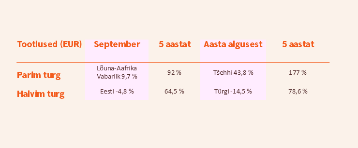 Kehvasti läks septembris Eesti aktsiaturul, mis kukkus kuuga 4,8%. Väikese likviidsuse tingimustes otsustas Norra naftafond oma positsioone vähendama hakata. Kas oli põhjuseks Venemaa lennukite piiririkkumine või midagi muud, me täpselt ei tea, kuid välisinvestorite leigest huvist see järjekordselt tunnistust annab. Positiivse poole pealt suurt hinnasurvet lähiajal enam tulema ei peaks, sest enamus välisinvestoreid on juba lahkunud ning küll nad ühel hetkel Eesti makronumbrite paranedes naasevad. Sinnamaani on kohalikel investoritel soodne aeg enda positsioone ülesse ehitada.