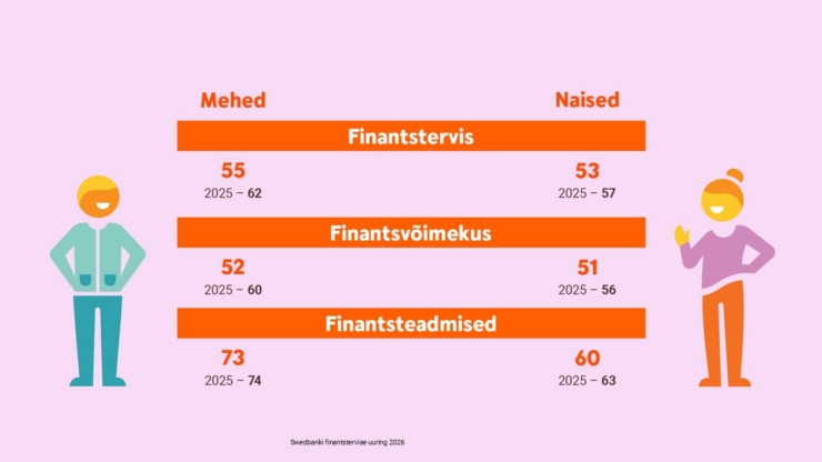 Viimaste aastate hinnatõus, ebakindlus majanduses ja kasvavad igapäevakulud on pannud Eesti inimesed valiku ette, kas katta ootamatud väljaminekud säästudest või lükata suuremad otsused edasi. Swedbanki värske uuringu tulemused näitavad, et surve rahakotile on jätnud oma jälje: Eesti on Balti riikidest ainus, kus inimeste finantstervise tase on aastaga langenud. Positiivne on aga see, et finantsteadmiste poolest on Eesti endiselt Balti riikide seas esikohal.