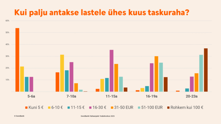 Pikema ülevaate uuringu tulemustest leiad Swedbanki YouTube’i kanalist: Laste taskuraha uuring 2025 x Swedbanki Rahaasjade Teabekeskus