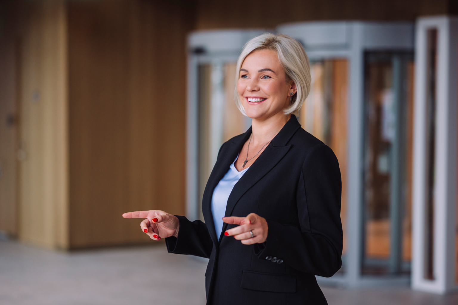 Fotol seisab Swedbanki kõneisik Astrid Maldre